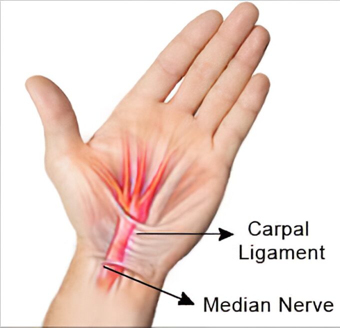 Here is an anatomical situation in the wrist therapists should to consider. The Transverse Carpal Ligament (TLC) forms the roof of the carpal tunnel and lets tendons of flexors with median nerve to pass under it on their way to the palm and fingers. In other words, the carpal tunnel is an entrance gate to the palm. The TCL medially originates from scaphoid and trapezium carpal bones, runs across the palmar wrist and inserts into the hamatum and pisiform bones laterally. Fig. 1 illustrates the position of transverse carpal ligament and its relations with median nerve.