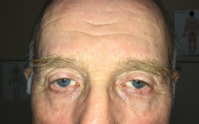 If you see a patient in your clinic who looks very tired, moves slowly has one side Ptosis especially with lacrimation you may suspect a case of Cluster Headache or Cluster Migraine. The presence or absence of previous Bell’s Palsy or Myasthenia Gravis could be ruled out during further intake and examination. Our patient did not exhibit any weakness of the facial musculature and there was no Myasthenia Gravis in his history.